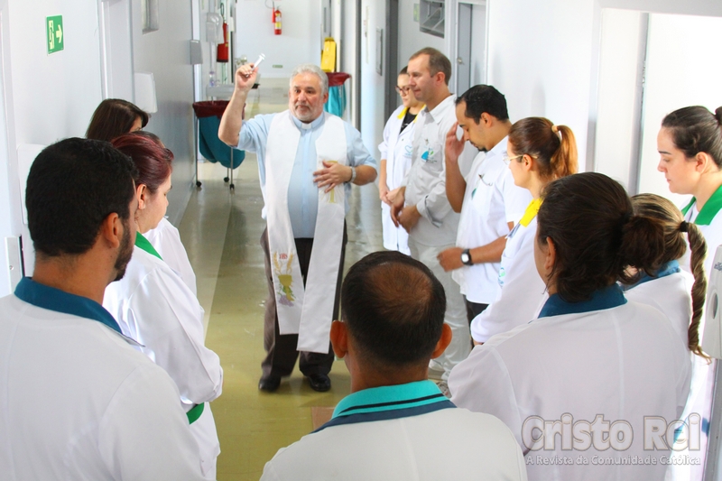 Com isso, Pe. Hélio finalizou a bênção salientando o encorajamento das equipes e manifestou gratidão por permanecerem de prontidão em suas funções indispensáveis no atendimento aos pacientes.