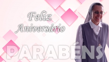Data: 12/06/2023 Ir. Solaide Pommer, das Pequenas Irmãs da Sagrada Família, recebe os parabéns pelo aniversário